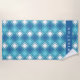 Incêndio no luxo costeiro com nossa toalha de praia, uma obra-prima de estilo e personalização. Apresentando um padrão mesmerizador de quadrados repetitivos em tons de azul tranquilo e vibrante, essa toalha é uma celebração da serenidade costeira e elegância eterno.