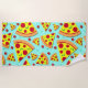 Toalha de praia de Trendy impressa com fatias gigantes de pizza de pepperoni em um fundo azul claro. Toalha engraçada para amantes de pizza!