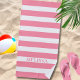 Toalha De Praia Pink And White Striped Name Cabana Stripe