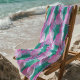 This classic tropical shades of this pineapple beach towel is a summer staple. Add lots of fun colorful pink pineapples and it becomes a tropical vision! Perfect for the pool, beach, garden, or anywhere you need a tropical vibe.