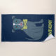 Esta toalha de praia personalizada apresenta uma ilustração de um belo filhote. Este cão-frade está a vestir um par de óculos coloridos e uma gravata de arco verde limão e está contra um fundo azul marinho. Na parte inferior do gráfico de pit bull puppy é um ponto para adicionar um nome em letras de verde limão de coordenação.