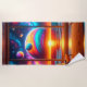 Esta toalha de praia tem um pôr do sol artístico com alguns planetas nela.