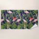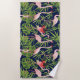 Toalha De Praia Plantas Tropicais Flamingo em fundo azul profundo
