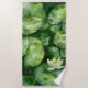 Relaxe na calma da natureza com esta toalha tranquila de praia de lírio límpida e aquosa. Traga serenidade e calma para o seu dia com esta ilustração pacífica de aquarela, que apresenta um monte de almofadas verdes de lírio e um solteiro florescente de flor branca de lótus. Os sapos beijados por orvalho e as texturas pareadas evocam a calma e a reflexão, fazer este presente perfeito para amantes da natureza, yoga e praticantes de meditação, jardineiros, e qualquer um atraído pela beleza natural. Personalize uma das almofadas de lírio com um nome, monograma ou mensagem especial para uma manutenção significativa e tranquila.