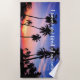 As toalhas de praia tropicais bonitas projetaram com palmeiras em uma silhueta do por do sol com capacidade para substituir dizer com sua própria mensagem, um nome do local ou o lugar, ou saem d como é. Projetado para o uso na praia, na piscina, ou como um presente da praia para grupos ou indivíduos.