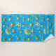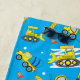 Toalha de praia bonita para um garoto com padrão de caminhonete de construção em um fundo azul. Fácil de personalizar com o seu nome!
