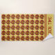 Divirta-se no sol e na praia com uma toalha de praia grande que mostra a foto de uma flor vermelha Collarette Dahlia em um fundo amarelo e impressa em um padrão repetitivo. Um design floral divertido!
