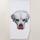 Numa grande canvas, o olhar de Labrador sente-se a comandar, com o flash de vermelho a amplificar o drama. Esta toalha é uma peça de arte igual e uma declaração de estilo de vida.