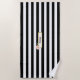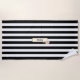 A toalha de praia listrada em preto e branco personalizada apresenta uma placa bonito em um roteiro preto incluído em uma borda dourada com um rosa de pêssego no canto. Você pode personalizar o nome em um texto elegante e mudar as cores fazer-o como um presente perfeito para si mesmo ou como um presente especial para um amigo ou membro da família.