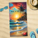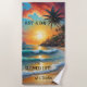 Toalha de praia com pintura de um pôr do sol numa praia tropical com uma maçã (opcional). Excelente para um professor e facilmente personalizável para qualquer outra pessoa!