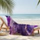 Enhance your beach experience with our luxurious beach towel featuring a mesmerizing purple agate design accented with shimmering glitter.