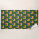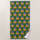 Divirta-se no sol e na praia com uma toalha de praia grande que mostra uma imagem colorida de um papagaio Rainbow Lorikeet contra um fundo verde e impresso em um padrão repetitivo.