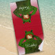 Garota Bonita com Sapo Verde Desenho Personalizado Nome Praia Toalha. Um belo desenho de uma garota vestindo um corpo de sapo verde em um fundo vermelho. Design de diversão para uma garota. Adicione seu nome.
