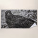 Uma fotografia a preto e branco de um pássaro negro com uma expressão facial séria, provavelmente se perguntando o que está acontecendo ao seu redor. Imagem Copyright ©2019 Kimberly J Tilley.