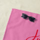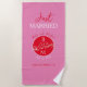 Toalha de casamento contemporânea, moderna, vibrante vermelha e rosa presente para recém-casados com monograma - iniciais, nomes, data, local, desenho exclusivo de casal de pássaros de amor romântico e caligrafia manuscrita na moda. Recém-Casados!