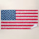 Bandeira americana brilhante. Design patriótico com listras brancas vermelhas azuis e estrelas de textura brilhante.