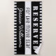 Reserve seu ponto na praia com esta toalha bonito que tem um olhar da ripa de diretor de filme. Em toda preto e branco com uma beira listrada, esta toalha de praia feita sob encomenda diz, "reservado para a estrela de cinema" com sala para seu nome. Você pode apenas adicionar seu nome, ou você pode mudar o resto do texto, demasiado! Apenas preencha os campos do modelo. Esta toalha faz um grande presente para um ator, um diretor, um estudante do teatro, e todo o lustre do filme.