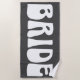 Esta ousada toalha de praia "BRIDE" é uma obrigação para qualquer noiva! Apresentando letras grandes e inspiradas retroativamente em branco contra um fundo preto contrastante, esta toalha é perfeita para festas de solteira, dias de praia, ou jorrando pela piscina. Sua design de revelação faz uma declaração divertida e adiciona um toque lúdico aos acessórios de noiva. Ideal para noivas que amam uma mistura de estilos antigos e modernos, esta toalha dá um dom prático, mas na moda ou a adição a qualquer celebração pré-casamento.