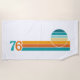 Retro vintage style sunset on extended horizontal stripe design with 76 (1976) typography in the style of the 1970s.