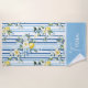 Na moda e toalha de praia personalizável, com um vibrante design, listrado, azul e branco, adornado com delicadas flores amarelas e brancas, um sotaque de limão e texto personalizado. Perfeito para adicionar um toque novo e elegante ao seu dispositivo.