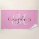 Toalha De Praia Rosa claro de Monograma Girly Calliographic