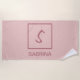 Toalha De Praia Rosa dourado nome monograma simples profissional
