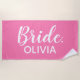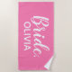 Toalha de Praia Rosa e Branca da Noiva Recém-Casada. Toalha de praia com escrita moderna para a esposa. Toalha de melosa perfeita para a noiva. Personalize este design personalizado com seu próprio nome ou texto.