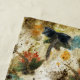 As libélulas multi-coloridas lindos flit em um fundo inspirado rústico. De meu impressão original do collograph.