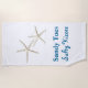 Esta toalha tropical de praia é acentuada por um casal de estrelas-do-mar, e o ditado divertido e flertante, Sandy Toes Salty Kisses, fazer que seja perfeitamente divertido para a praia!