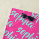 Toalha de praia com um nome personalizado em uma fonte de script azul aqua em um fundo rosa quente. Design de cor e cor.