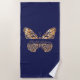 Toalha De Praia script do nome da borboleta dourada azul marinho