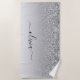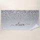 Toalha De Praia Script Girly Sparkle Glitter Monograma de Silver