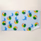 Um adorável design de selo de origami e bola de praia em uma toalha de praia de cor de fundo personalizada.