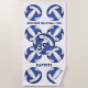 Esta toalha de praia temática divertida de vôlei apresenta um padrão de volicombolas estilizadas azuis e brancas, organizadas em um padrão espelhado com texto personalizável entre os volleybolas, atualmente o nome da equipe e o nome do mascote - o nome do atleta e o número da camisa podem ser personalizados, assim como a cor branca do fundo - por katz_d_zynes