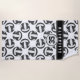 Esta linda toalha de praia, temática de vôlei, apresenta um padrão de pequenas bolas estilizadas, pretas e brancas, dispostas em um padrão espelhado em um padrão branco personalizável - personalize com seu nome e número de camisa - por katz_d_zynes