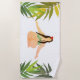 Beach Towel com arte e folhagem mediadora, cor de fundo personalizada.