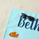 Esta bela toalha de praia apresenta uma sereia cercada por peixes e um nome editável no topo. Aproveite a sua nova Mermaid editável e a Fish Beach Towel!