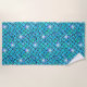 Toalha De Praia Sereia Escala Azul Aqua Azul com Estrelas Brancas