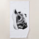 Um filhote em repouso desenhado em negrito monocromo se estende através dessa toalha, trazendo energia silenciosa para seus dias de verão. Um companheiro sereno para sol, areia e pausas pacíficas.