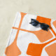 Este conjunto de toalhas tem uma design de flechas moderna do século médio em dois tons de laranja num campo de branco.