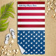 Adicione qualquer nome a esta toalha de praia design da bandeira patrioticamente festiva dos EUA.