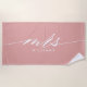 Sra. toalha de praia personalizada. Design apresenta um script de tipografia em negrito, com letras pretas ''mrs'' em um plano de fundo de blush. Faz um presente perfeito para a lua de mel ou como um guardião para recém-casados. Personalize mais com um nome.