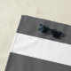 Toalha De Praia Stripe branca e Cinza e monograma