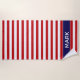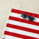 Toalha de praia com faixa de cabana com padrão listrado azul, vermelho e branco. Personalize com seu nome.