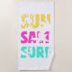 Sobe o sol em estilo! Esta toalha de praia 'Surf Sol' apresenta letras arrojadas e vibrantes que o verão gritar vibe. Suave, absorvente e perfeito para dias de praia, salgadinhos de poolside ou getaways tropicais.