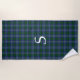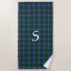 toalha de praia na moda feita no clássico padrão de xadrez azul e verde do clã escocês Sutherland tartan. Personalize o grande monograma branco de uma letra, no meio, para satisfazer as suas necessidades.