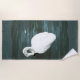 Uma pintura de um Cisne Mudo dormindo flutuando ao longo da superfície de um lago, onde a tonalidade da água é azul e verde. Uma água solitária senta-se na superfície do lago. Imagem Copyright ©2022 Kimberly J Tilley. zazzle.com/store/kimberlyjt