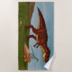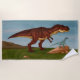 Um tiranossauro Rex e o Velociraptor tomam uma caminhada através de um campo gramíneo.