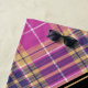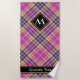Design de cor rosa, ouro amarelo e azul-tartan. Um padrão perfeito. Texto personalizado e monograma.