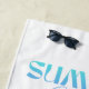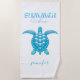 Torre de Praia de Tartaruga do Mar Personalizada, um acessório obrigatório para suas aventuras de verão. Design apresenta tartaruga-do-mar em tons vibrantes de cor azul-do-mar sobre um fundo branco. Texto lúdico e elevador "Summer Vibes" escrito na tipografia moderna. Personalize-o com seu nome para torná-lo exclusivamente seu ou para dar como um presente ponderado.